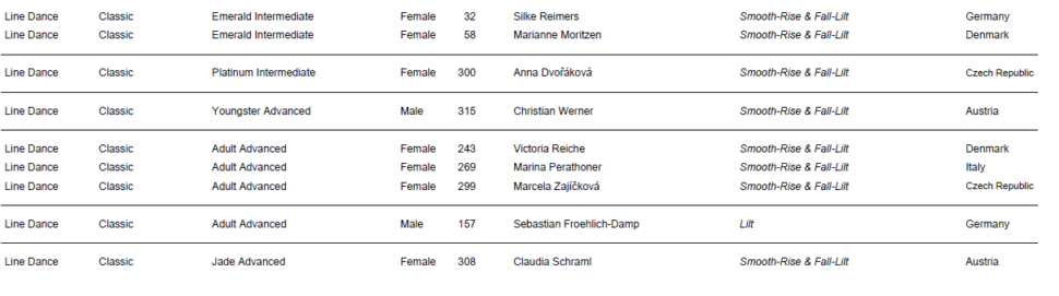 First version of the competitors list. Please check it. Send any changes to czechlinedance@czechlinedance.cz by Sunday, October 5.Download Competitors list – last version 13.10.2025