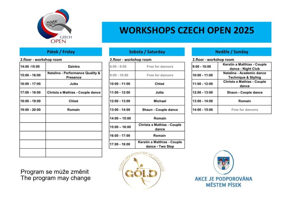 First version of the competitors list. Please check it. Send any changes to czechlinedance@czechlinedance.cz by Sunday, October 5.Download Competitors list – last version 13.10.2025